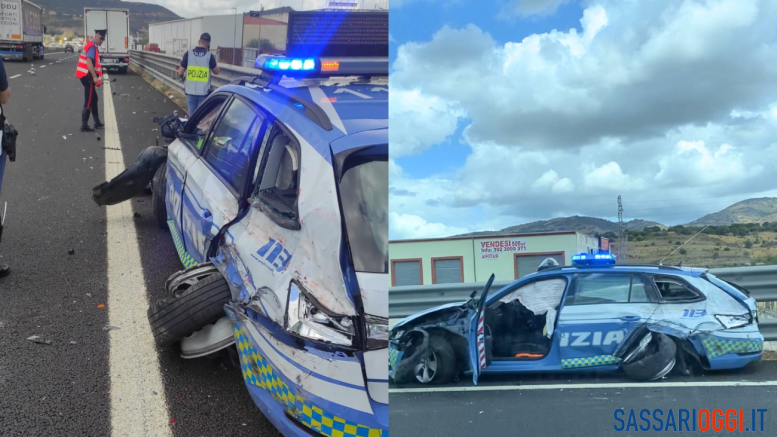 L’incidente sulla strada statale 131 che ha coinvolto la polizia stradale.