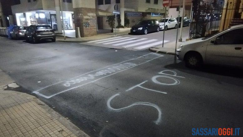 Tanti, troppi, incidenti all’incrocio tra via Zanfarino e via Torres: a Sassari qualcuno ha deciso di tracciare a mano lo “Stop”. Nella foto di Marco Milanese si vede la segnaletica fai da te comparsa per cercare di limitare i danni. Gli automobilisti sassaresi sanno quanto sia pericoloso quell’incrocio, ma non basta a evitare gli incidenti.