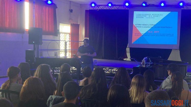 Letteratura, musica e canto. Sono stati questi gli ingredienti di un reading dal titolo “Ultimo viene il corvo – letture e canzoni del Calvino resistenziale” che si è tenuto nell’auditorium del Liceo musicale Azuni di via de Carolis, a Sassari, per gli studenti del triennio. Protagonista d’eccezione sul palco è stato Elio Biffi, voce e tastierista del gruppo “Pinguini Tattici Nucleari“, che ha incontrato gli allievi su iniziativa di Fabio Madau, docente di storia della musica, grazie alla proposta dell’associazione “Le ragazze terribili” presente all’evento con Barbara Vargiu e Beatrice Sorba.