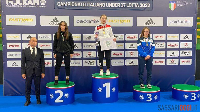 La lottatrice Denise Piroddu, atleta della Polisportiva Athlon Sassari, allenata da Mario Piroddu, conquista