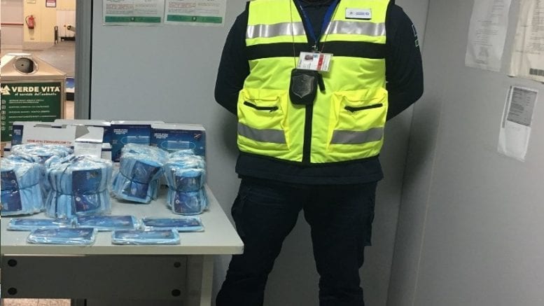 Durante le verifiche i funzionari hanno fermato e sottoposto a controllo un viaggiatore proveniente dal Bangladesh, via Roma Fiumicino. L’uomo nel bagaglio nascondeva nel bagaglio 990 mascherine “chirurgiche”, sulle quali era impresso un marchio CE non autentico e prive dell’attestato di conformità.