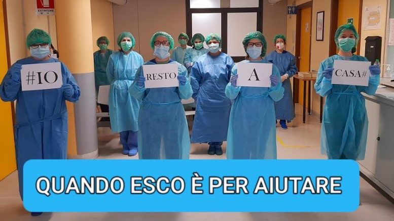 E così dalle finestre della Radiologia dell’ospedale civile è apparso il primo telone con disegnato un arcobaleno e la scritta “Tutto andrà bene” e l’invito a non uscire dalla propria abitazione se non in casi strettamente necessari, con lo slogan “Io resto a casa”.