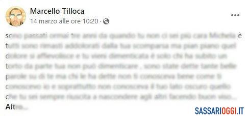 Marcello Tilloca, condannato in via definitiva dai giudici della prima sezione della Cassazione – lo scorso 9 marzo – a 30 anni di reclusione per l’omicidio di Michela Fiori, ricompare tre giorni fa sul suo profilo facebook. Lui o un fake, con un post pieno di accuse contro la moglie, e madre dei suoi due figli, strangolata nella sua casa di Alghero il 23 dicembre del 2018. È lecito dubitare dell’autore delle parole apparse sui social visto che l’uomo non può avere accesso a internet né al cellulare. Si nota però una corrispondenza tra il contenuto del post e alcune affermazioni di Tilloca del passato come quelle espresse in una lettera shock inviata alla Nuova Sardegna nel febbraio del 2019.