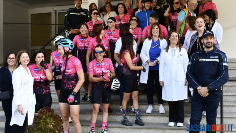 Le Pink Flamingos questa mattina hanno fatto tappa al Santissima Annunziata dell’Aou di Sassari. Una piccola carovana di donne che, in sella alle loro biciclette, stanno compiendo il giro della Sardegna per dimostrare che la forza di volontà è più forte della malattia. Ad accoglierle sul piazzale dell’ospedale civile c’erano la direttrice sanitaria dell’Aou di Sassari, Lucia Anna Mameli, e il personale medico e infermieristico dell’Oncologia medica.