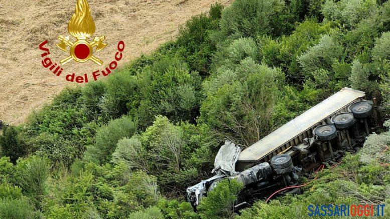 Non ce l’ha fatta Sandro Ascione, camionista 65enne di Porto Torres, uscito di strada col suo tir lungo la Sassari-Olbia. Stava percorrendo la statale della Nurra quando, per cause ancora da verificare, ha perso il controllo del mezzo pesante. Il tir ha sfondato il guardrail mentre passava su un cavalcavia ed è caduto per decine di metri.
