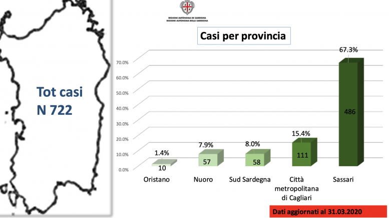 Dopo pochi giorni il primo caso anche a Sassari e da lì è stato un crescere di contagi, arrivando in breve e tempo a conquistare il primato dell’Isola. Il 67,3% dei pazienti affetti da Covid si trovano nel nord Sardegna, pari a 486 casi.