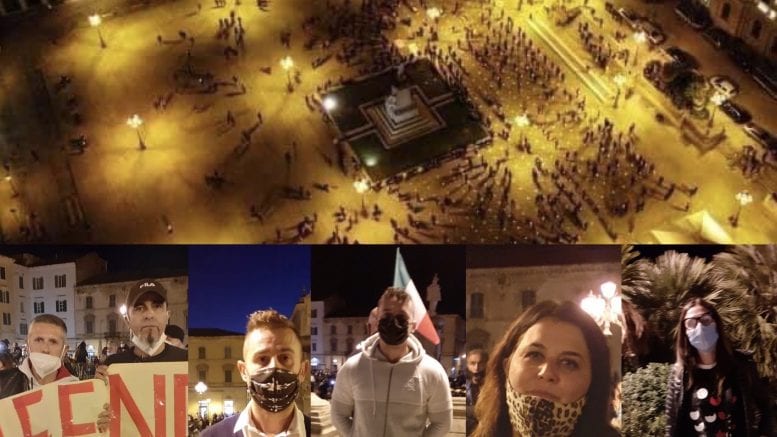 Tra i manifestanti che stazionavano in piedi, ieri sera, regolarmente distanziati all’interno della piazza, c’era Patrizia Piga, ambulante nel campo dello street food. “Siamo in lockdown da marzo. Da allora non abbiamo una festa o un evento in cui andare a lavorare e rispetto agli operatori che stanno intervenendo qui stasera, noi ambulanti dello street food, non abbiamo occasione di svolgere il nostro lavoro. Non ho ancora ricevuto né il famoso fondo perduto, né il Ristori. Chiediamo che la Regione ci eroghi subito gli indennizzi che ci promette da tre mesi e che le città possano darci una postazione fissa nella quale lavorare, dal momento che da mesi ci viene proibito di lavorare nelle feste e nelle sagre”, ha rinforzato il concetto.