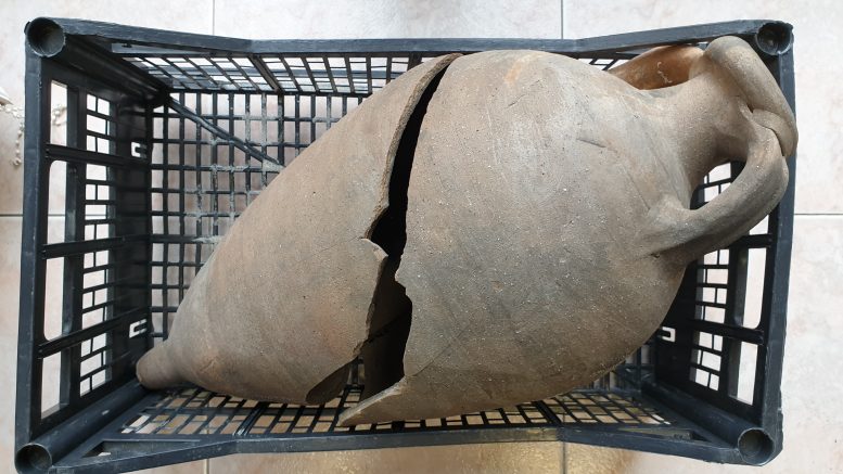 I reperti, già avvistati e segnalati da privati cittadini, sono stati adeguatamente conservati in attesa dell’esame della Soprintendenza competente. Dalla perizia tecnica eseguita da Gabriella Gasperetti, Responsabile del Servizio per l’Archeologia Subacquea della Soprintendenza, è risultato che l’anfora integra appartiene ad un tipo prodotto nella Penisola Iberica tra il III e il IV secolo d.C., mentre gli altri frammenti sono attribuibili genericamente ad età romana.
