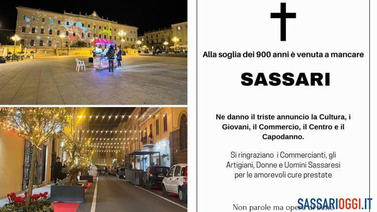 La carenza di eventi, luminarie e iniziative per Natale e Capodanno a Sassari scatena ironia e polemiche sui social. C’è chi è arrivato a preparare il necrologio per la città, a sottolineare il momento poco vivace. “Alla soglia dei 900 anni è venuta a mancare Sassari – si legge nel finto manifesto funebre pubblicato sulla pagina Facebook Segnala a Sassari -. Ne danno il triste annuncio la cultura, i giovani, il commercio, il centro e il Capodanno. Si ringraziano i commercianti, gli artigiani, donne e uomini sassaresi, per le amorevoli cure prestate”.