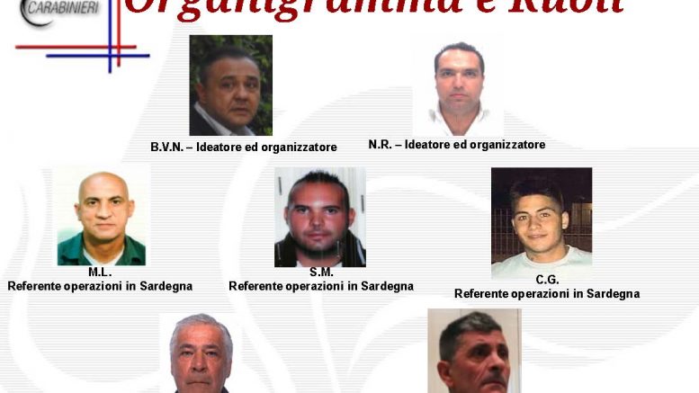 Le ipotesi investigative, tradotte in richiesta di misura cautelare dalla Procura della Repubblica di Sassari, sono state condivise dall’Ufficio del GIP che ha emesso il provvedimento restrittivo odierno con cui è stata disposta la custodia in carcere per Lussorio Manca, oristanese di 53 anni, Vito Nicola Belmonte, materano di 52 anni, Riccardo Notarpietro, andriese 43enne, Marco Salis, sassarese 38enne. Nello stesso provvedimento veniva disposta la misura degli arresti domiciliari nei confronti di Giulio Caggiari, sassarese 20enne, Salvatore Campus, nuorese 52enne e Maurizio Beccantini, modenese di 60 anni.