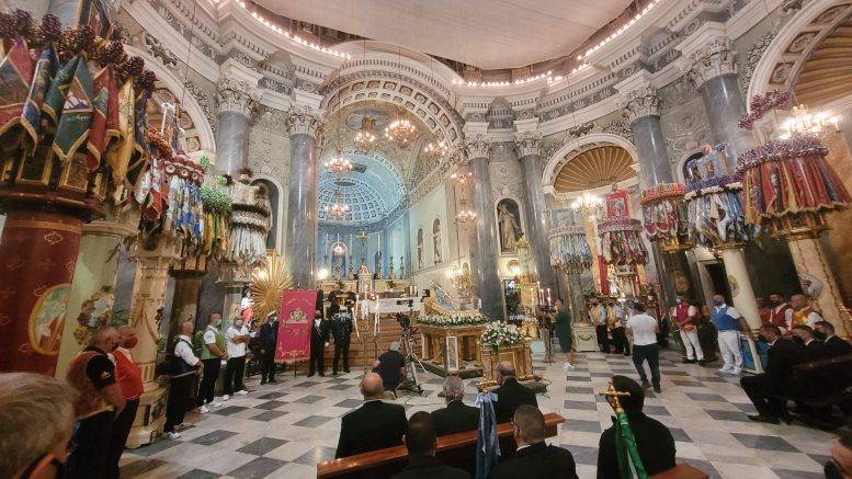 La Festha Manna compie un piccolo passo verso la normalità. La seconda edizione dell’era pandemica della Faradda inizia dal primo mattino col ripristino davanti ai cittadini, dopo un anno a porte chiuse, della vestizione dei ceri da parte delle dodici corporazioni. Nessun assembramento registrato nelle due ore del rito, dalle dieci a mezzogiorno, compiuto sotto l’occhio vigile della municipale. Un unico intoppo ma risolto subito: durante l’inserimento del capitello sul cero, i Muratori si sono resi conto che un dado era spanato e l’hanno rimesso in sicurezza evitando così complicazioni più avanti.
