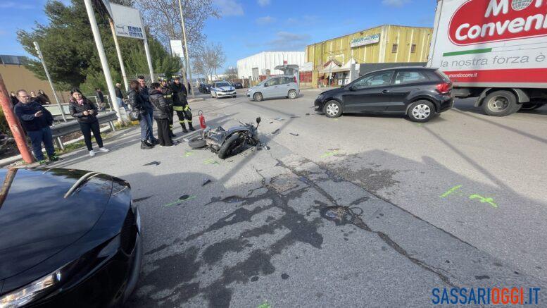 Scontro tra un’auto e una moto davanti al centro commerciale Le Porte di Sassari, l’incidente oggi intorno alle 15:30. In un orario di traffico intenso. Nel primo pomeriggio molte persone raggiungono i negozi o rientrano a casa dal lavoro. In questo contesto abbastanza affollato si è verificato l’impatto tra i due mezzi.