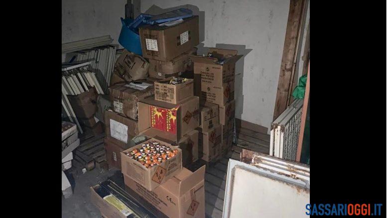 Il locale, in evidenti condizioni precarie e con copertura in eternit, aveva al suo interno diversi scatoloni contenenti diversi articoli pirotecnici. Il tutto appariva in pessimo stato di conservazione e custodito in promiscuità con altro materiale facilmente infiammabile, quali accendini, oggetti in plastica e tovaglioli.