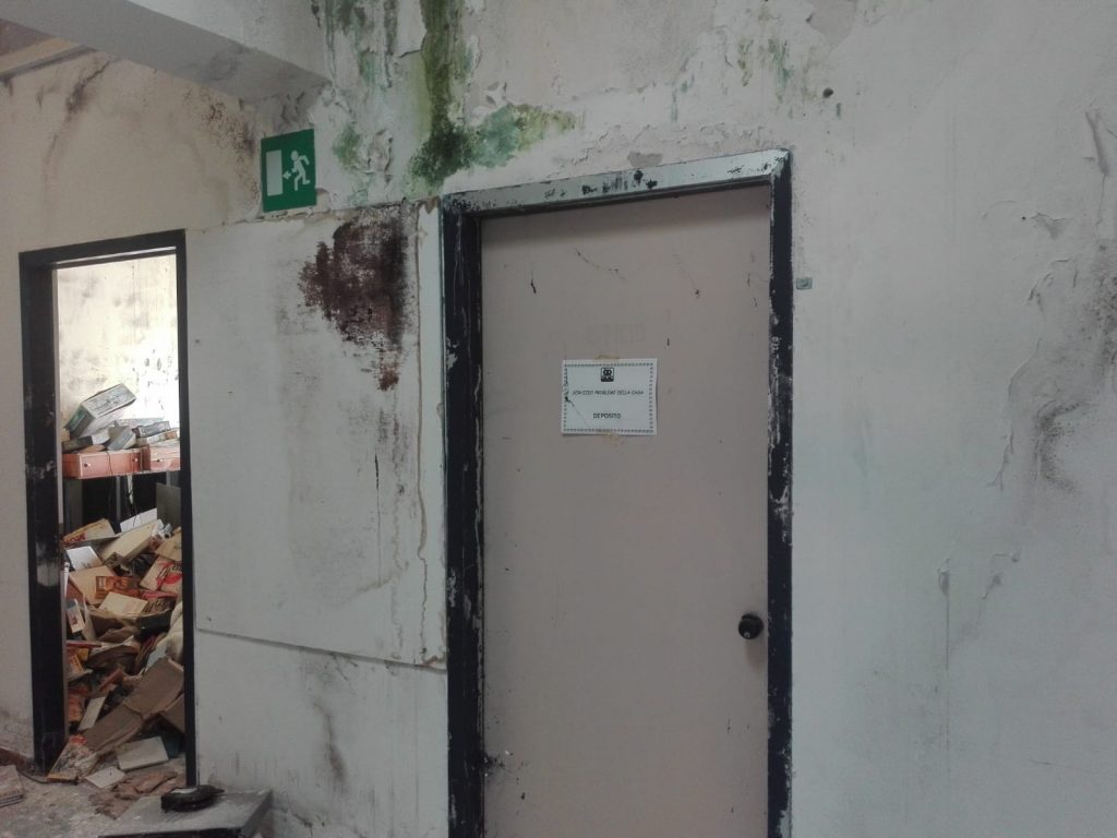 Da tutti conosciuto come il vecchio Sert, l’edificio di via Bottego dopo anni si presenta in completo stato di abbandono. Siamo entrati nella struttura, percorrendo le rampe di scale con i gradini consumati dal tempo che passa. All’interno lunghi corridoi deserti, pavimenti che scoppiano a causa dell’umidità, le porte che recano ancora le targhe e gli orari di ricevimento a testimonianza di ciò che c’era. Ci sono montagne di documenti, raccoglitori misti a calcinacci e sporcizia di ogni genere, arredi per uffici accatastati e uccelli morti. “I vandali hanno buttato giù il muro e hanno aperto un varco di accesso alla struttura. Questa è terra di nessuno”, commenta sottovoce un passante quasi rassegnato.