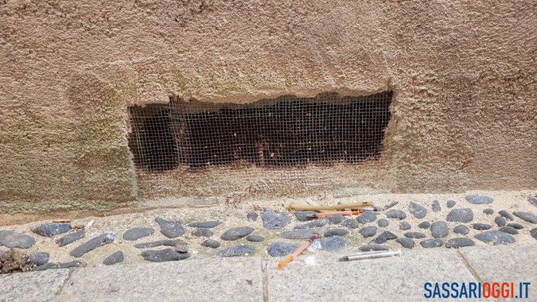 Droga nei vicoli di Sassari. Quattro siringhe e un laccio emostatico giacciono in piena vista da stamattina in via San Sisto, vicino ad abitazioni, residenti e pedoni. Due arancioni, due bianche, più il rosso nello stantuffo di una a testimonianza della vittima dell’atto, e un laccio grigio: questi i colori tossici dell’arredo urbano depositati come normali rifiuti sullo stretto camminamento, appena vicino al muro delle case e a metà tra piazza della Frumentaria e via La Marmora.