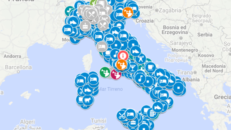 La mappa si chiama aperti e liberi ed è in continuo aggiornamento. Le attività sono geolocalizzate e divise per settore di appartenenza, in grigio invece vengono evidenziate i locali che chiedono il certificato verde all’ingresso.