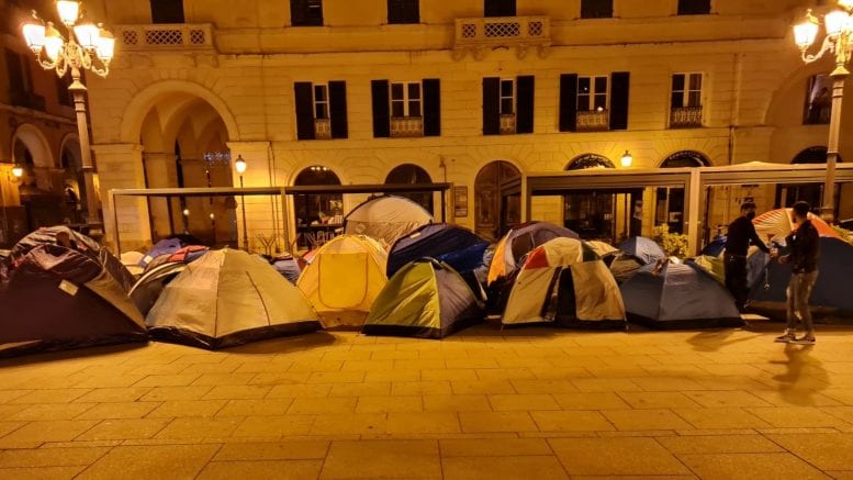 Tende in piazza d’Italia a Sassari: centinaia di persone contro le chiusure e il coprifuoco