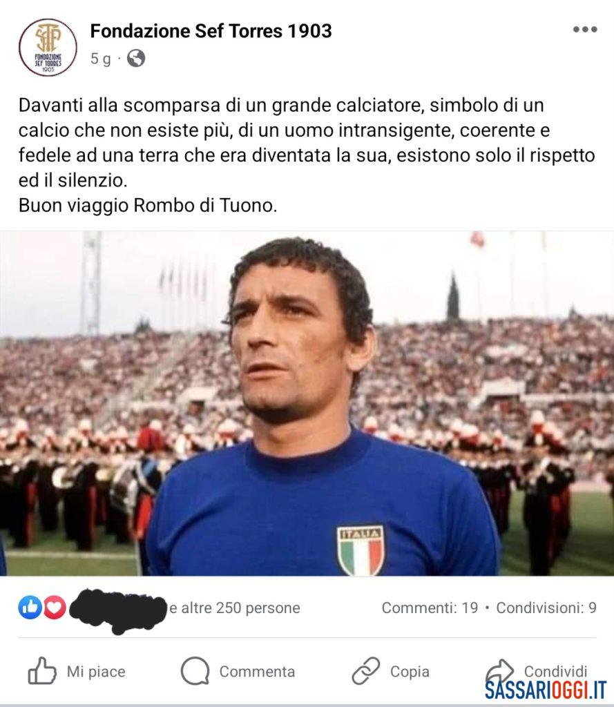Una pagina di tifosi della Torres omaggia Gigi Riva