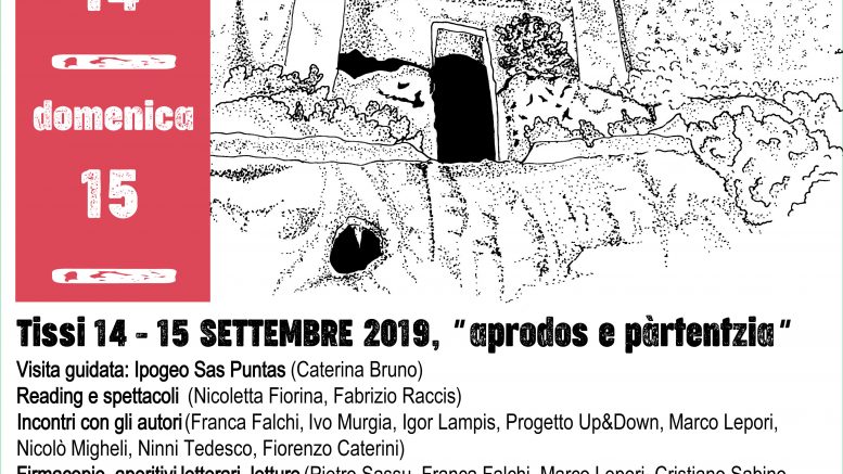 – ore 16:00 Dibattito sul tema Aprodos e Pàrtenztia/Approdi e Partenze. Tematiche da affrontare: Emigrazione/immigrazione, accoglienza/cittadinanza. Saranno ospiti: Gianmaria Budroni (Sindaco di Tissi), Davide Corriga (Sindaco di Bauladu e Presidente della Corona de Logu) Sandra Sanna (Giornalista, direttore Canale 12), Cristiano Sabino (Docente e saggista).