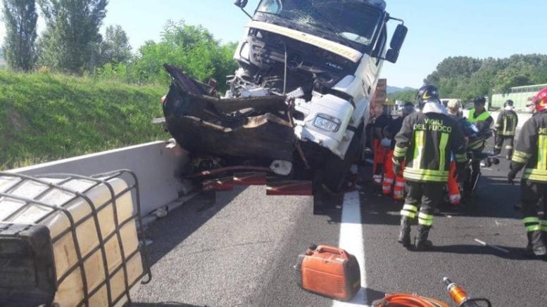 Secondo una prima ricostruzione, il camion avrebbe tamponato il furgone che ha sbattuto contro un altro mezzo pesante rimanendo schiacciato. Sulla vicenda indagano gli agenti della polizia stradale di Bologna.