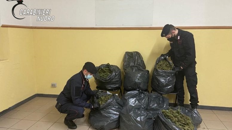 Nel corso di questi servizi i militari hanno rinvenuto nel guado di un torrente alla periferia di Lanusei, in località “Taccu Illixeddu”, 11 sacchi contenenti 14 chili di cannabis indica, parzialmente essiccata.