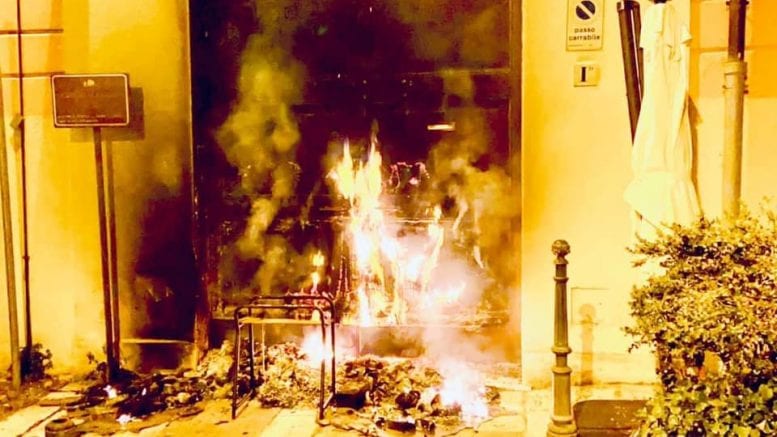 Incendio doloso, nella notte, nel Palazzo Quesada di San Sebastiano a Sassari. Ignoti hanno appiccato le fiamme nell’antico portone in via Mercato, che è stato parzialmente distrutto.