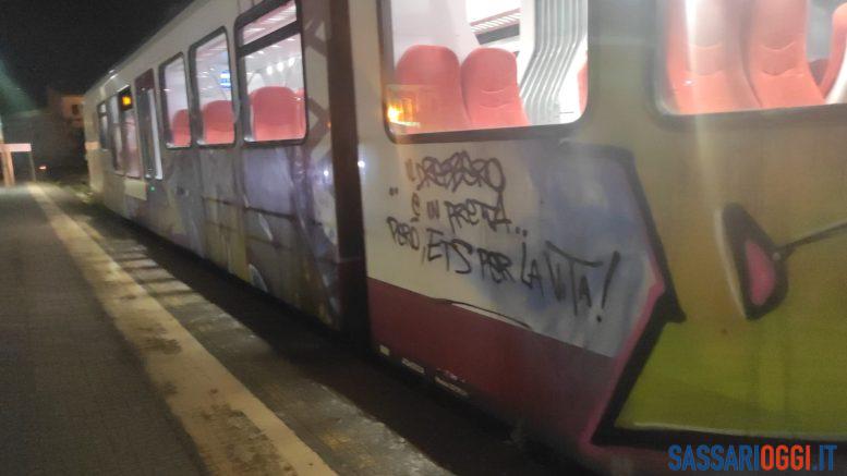 Vandali in azione contro il treno che da Sassari conduce a Sorso, e viceversa. Nei giorni scorsi il mezzo di proprietà dell’Arst è stato preso di mira da alcuni writer, che si sono divertiti con le bombolette colorate realizzando disegni e scritte.