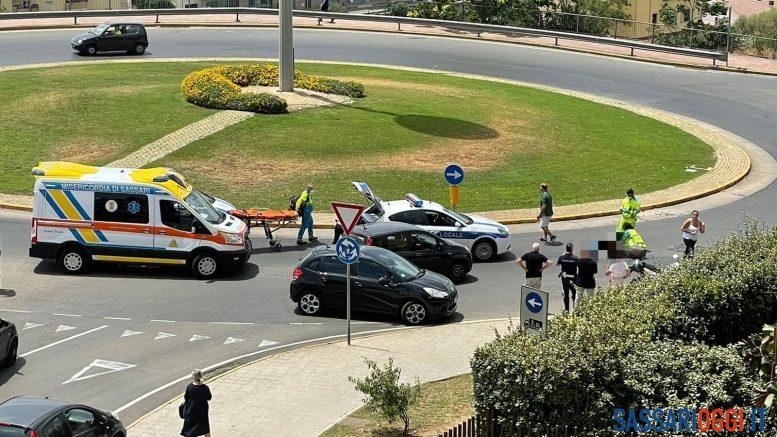 L’incidente alla rotatoria di via Don Sturzo a Sassari.