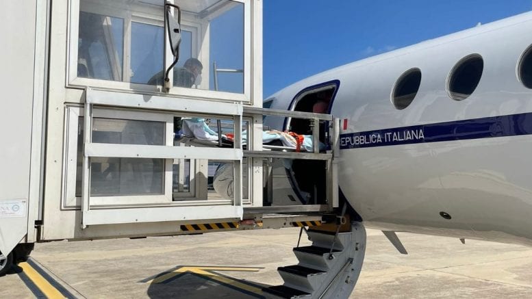 La richiesta di un immediato trasferimento dall’ ospedale “Sirai” di Carbonia al policlinico “San Mattia” di Pavia è stata avanzata dalla Prefettura di Cagliari alla Sala Situazioni di Vertice del Comando della Squadra Aerea, la sala operativa dell’Aeronautica Militare che si occupa, tra l’altro, del coordinamento di questo genere di attività a favore della popolazione civile su tutto il territorio nazionale.