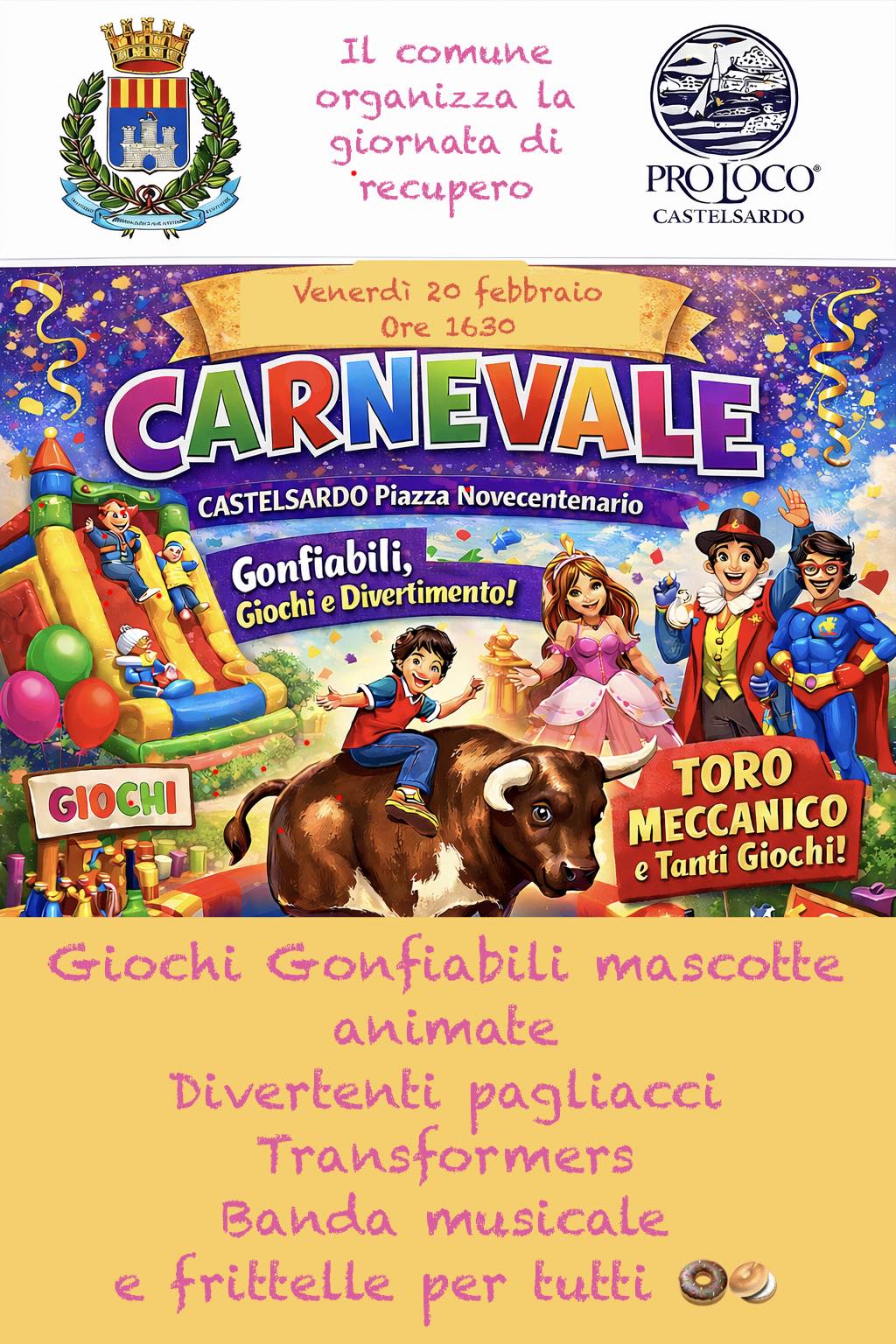 Il Carnevale arriva nel cuore di Castelsardo con un pomeriggio tutto da vivere!