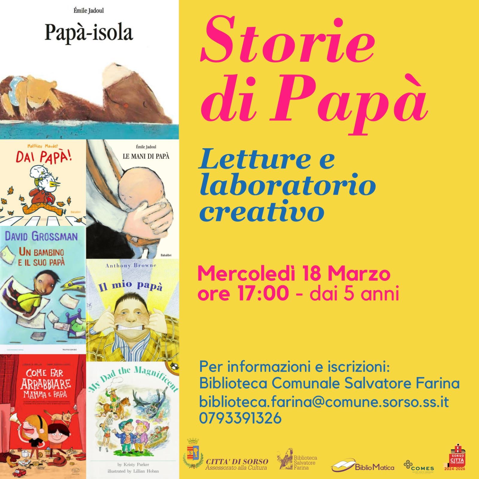 In occasione della Festa del Papà, la biblioteca vi invita al laboratorio di animazione alla lettura dedicato ai bambini dai 5 anni.