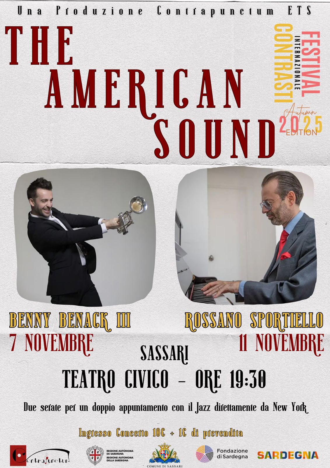 Il Festival Internazionale Contrasti ritorna a Sassari per l’Autumn Edition con due strepitosi appuntamenti dedicati alla musica jazz. Venerdì 7 novembre alle 19.30, a salire sul palco del Teatro Civico sarà il trombettista e cantante americano Benny Benack III, forte di una carriera straordinaria che gli è valsa la candidatura ai prestigiosi Emmy Awards. Martedì 11 novembre, alle 19.30, di fronte al pubblico di Palazzo di Città si esibirà il pianista lombardo Rossano Sportiello, uno dei musicisti più acclamati del panorama jazz internazionale.
