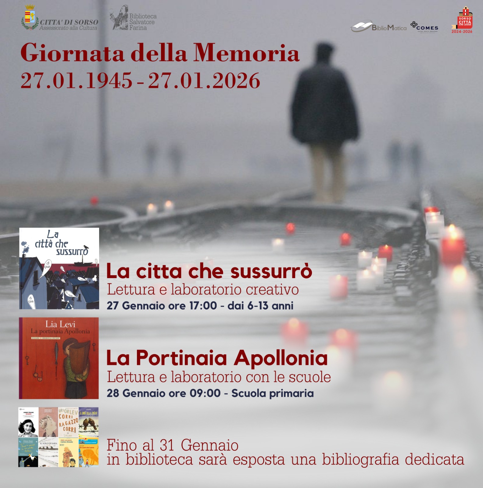 Per celebrare la Giornata della Memoria, oggi, martedì 27 gennaio, l’Amministrazione comunale in collaborazione con la Biblioteca comunale “Salvatore Farina”, organizza un pomeriggio di Lettura e laboratorio creativo sul testo “La città che sussurrò”, storia di come un intero villaggio, guidato da una bambina, ha salvato dai nazisti i suoi abitanti ebrei.