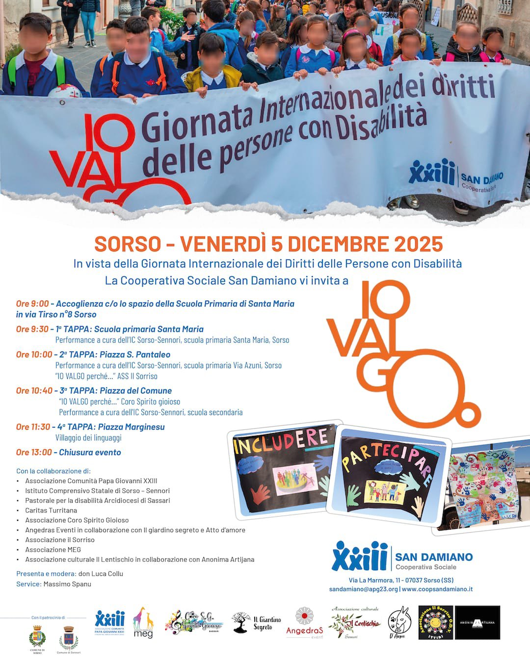 Un evento speciale per celebrare la Giornata Internazionale dei Diritti delle Persone con Disabilità: per venerdì 5 dicembre, la Cooperativa Sociale San Damiano – con il patrocinio del Comune di Sorso e in collaborazione con l’Istituto comprensivo Sorso-Sennori e numerose associazioni e realtà che operano nel territorio – organizza l’edizione 2025 di “Io valgo”, una mattinata di performance, musica e condivisione per affermare con forza il valore unico di ogni persona.