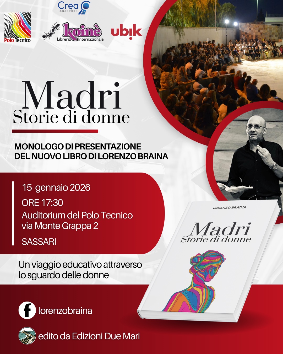 Giovedì 15 gennaio, all’Auditorium del Polo Tecnico, questo libro prende voce attraverso un monologo che ne ripercorre i temi, le emozioni e le domande aperte. Un incontro per ascoltare, riflettere e riconoscersi, perché parlare di madri significa parlare della radice più profonda delle nostre vite.