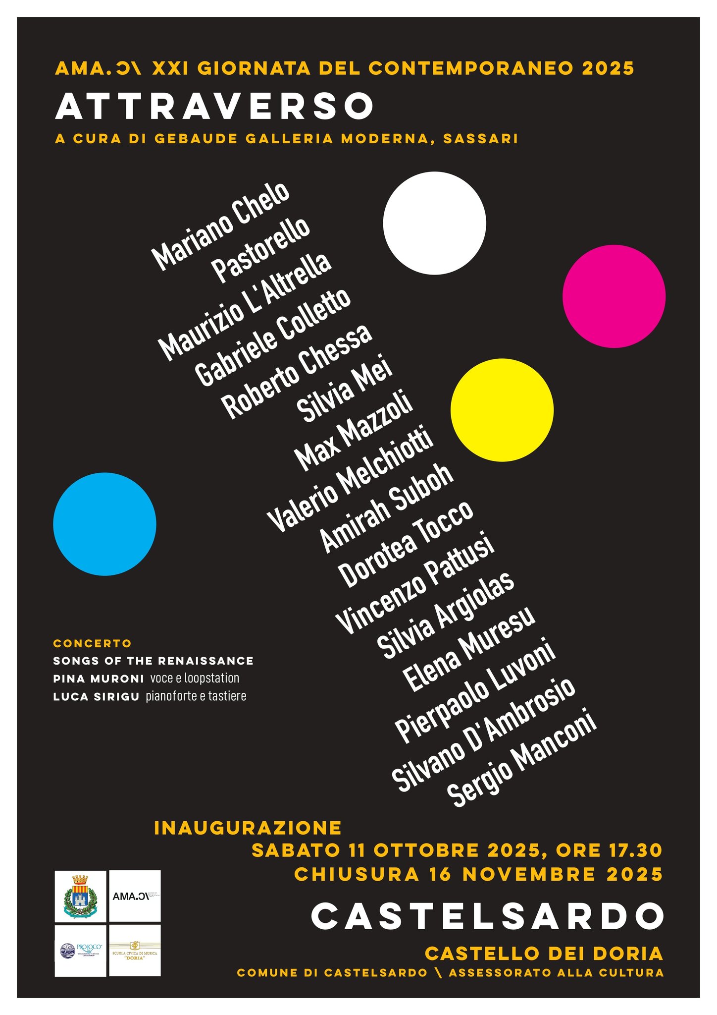 La mostra “ATTRAVERSO”, a cura di Gebaude Galleria Moderna di Sassari, si inserisce nell’ambito della XXI Giornata del Contemporaneo promossa da AMACI – Associazione dei Musei d’Arte Contemporanea Italiani