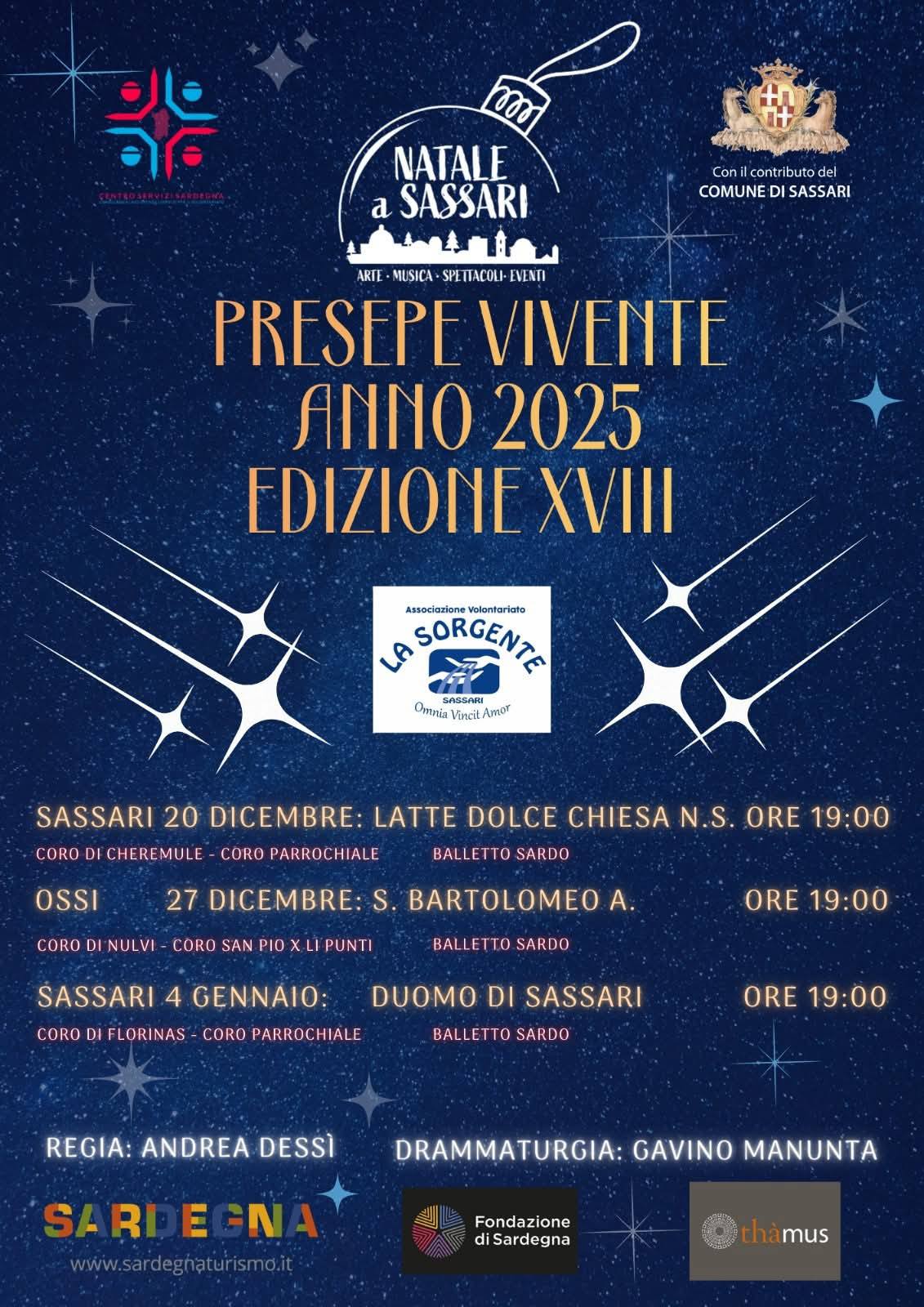 La cerimonia si terrà come da locandina, domani, 27 dicembre alle 19.00 ad Ossi, alla chiesa parrocchiale San Bartolomeo apostolo in via Roma 48. Poi il 4 gennaio al Duomo di Sassari.
