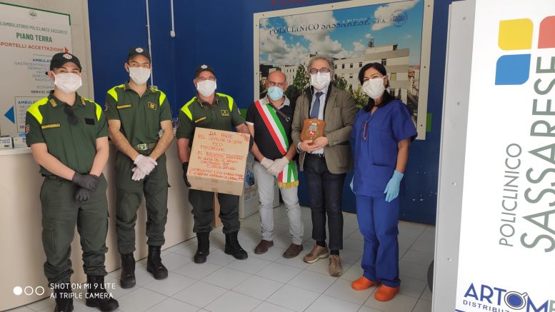 Il capitano della compagnia barracellare di Giave, Antonello Dettori, accompagnato dal vicesindaco del paese, Luciano Faedda, hanno incontrato il direttore del Policlinico Sassarese, dottor Vincenzo Dettori al quale hanno consegnato 500 mascherine per combattere l’emergenza coronavirus. Nella stessa occasione, il vicesindaco ha consegnato una targa lignea con lo stemma del Comune di Giave. Atto di generosità molto apprezzato dal direttore e personale sanitario del Policlinico, che ha ricordato la figura del dottor Marco Spissu, originario di Giave, morto il mese scorso di Covid-19.