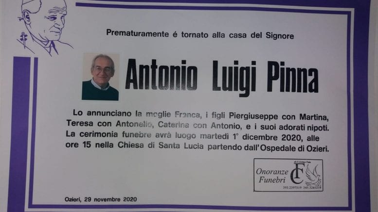 La cerimonia funebre avrà luogo martedì 1 dicembre 2020, alle ore 15, nella chiesa di Santa Lucia partendo dall’ospedale di Ozieri.