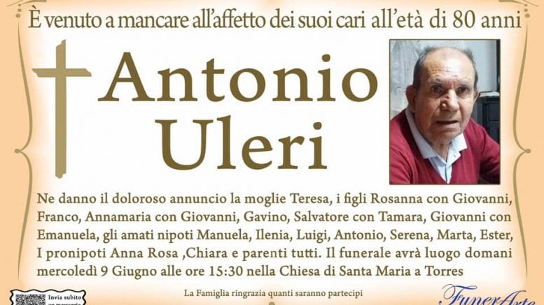 Ne danno il doloroso annuncio la moglie Teresa, i figli Rosanna con Giovanni, Franco, Annamaria con Giovanni, Gavino, Salvatore con Tamara, Giovanni con Emanuela, gli amati nipoti Manuela, Ilenia, Luigi, Antonio, Serena, Marta, Ester, i pronipoti Anna Rosa, Chiara e parenti tutti.
