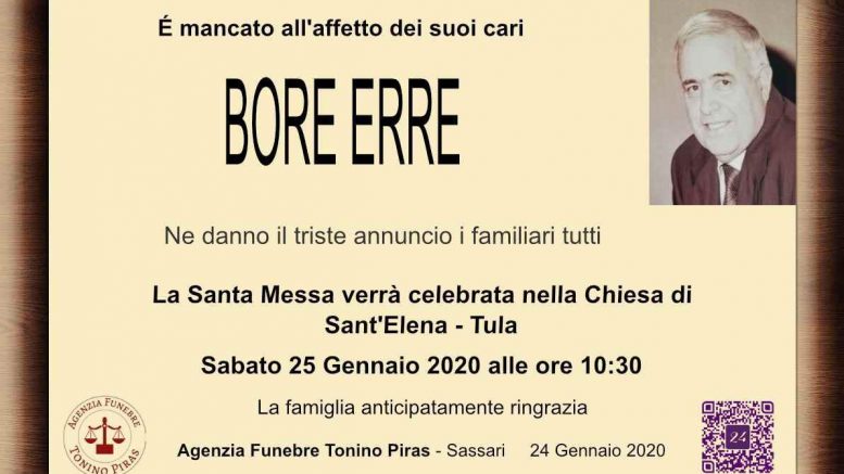 E’ mancato all’affetto dei suoi cari Bore Erre. Ne danno il triste annuncio i famigliari tutti.