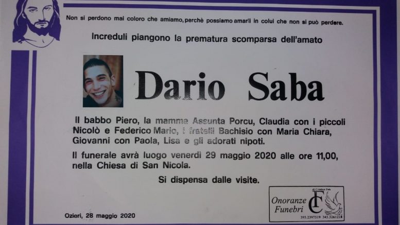 Il funerale avrà luogo oggi, 29 maggio 2020, alle 11 nella chiesa di San Nicola (Ozieri).