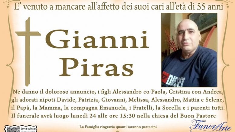 Il funerale avrà luogo lunedì 24 alle ore 15:30 nella chiesa del Buon Pastore a Sassari.
