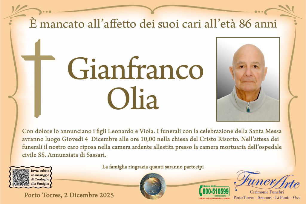 È mancato all’affetto dei suoi cari all’età di 75 anni, Raffaele Cossu. I funerali si terranno giovedì 4 dicembre, alle ore 10, nella parrocchia del S. Rosario, ad Alghero.