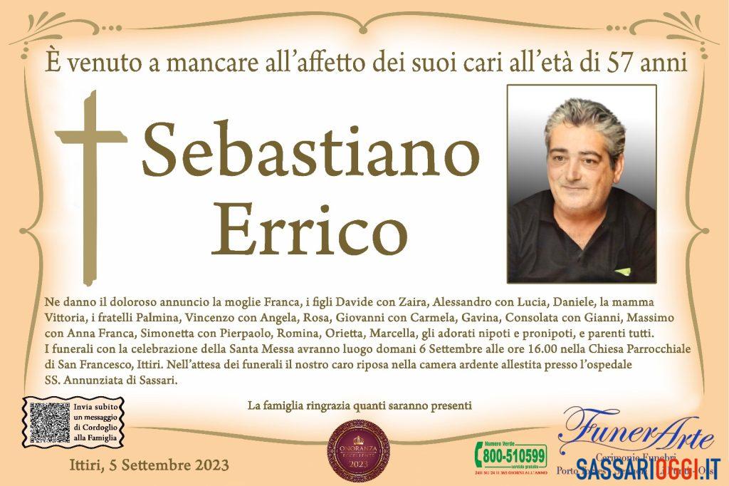 “Ha reso l’anima a Dio Sebastiano Errico di anni 57, coniugato con Cadoni Francesca”, annuncia il parroco di San Francesco a Ittiri. Don Luigi ha rivelato la scomparsa a tutta la comunità, così come ha fatto la famiglia. Sebastiano Errico aveva solo 57 anni e lascia la moglie Franca con i figli Davide con Zaira, Alessandro con Lucia e Daniele.