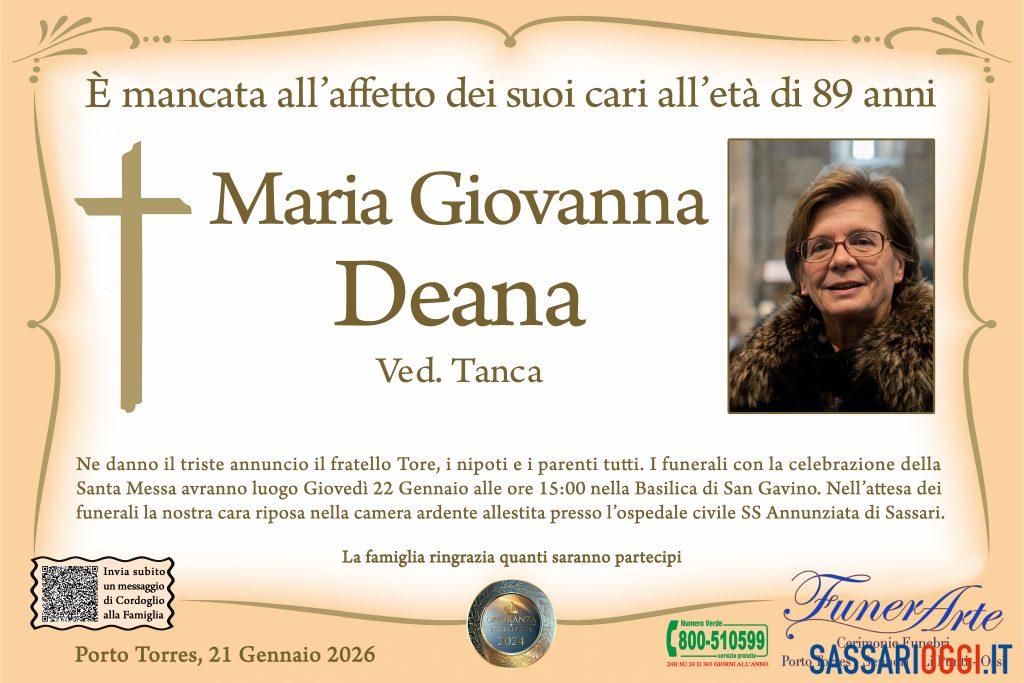 I nostri cari 21 Gennaio 2026 di Maria Verderame I necrologi di Sassari. È mancata all’affetto dei suoi cari all’età di 89 anni, Maria Giovanna Deana. TEMI:Maria Giovanna Deana Condividi l'articolo