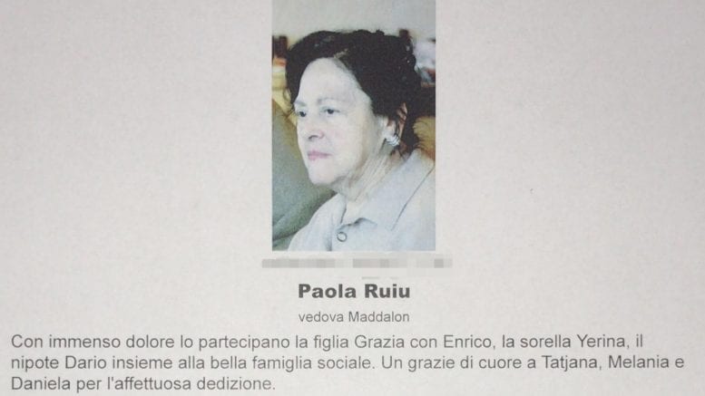 Con immenso dolore lo partecipano la figlia Grazia con Enrico, la sorella Yerina, il nipote Dario insieme alla bella famiglia sociale. Un grazie di cuore a Tatjana, Melania e Daniela per l’affettuosa dedizione.