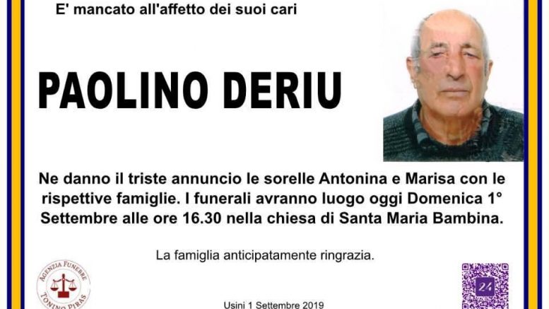Ne danno il triste annuncio le sorelle Antonina e Marisa con le rispettive famiglie.