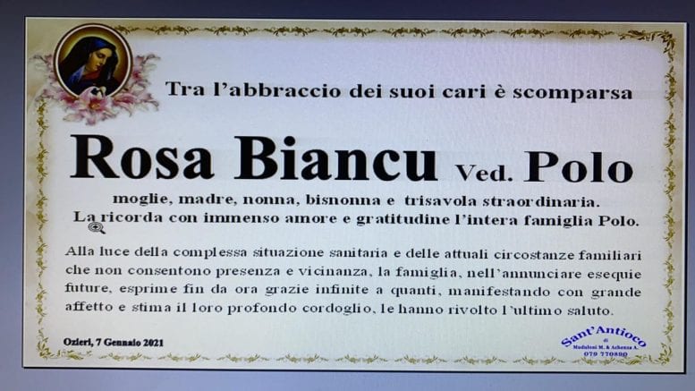 Tra l’abbraccio dei suoi cari è scomparsa Rosa Biancu (ved. Polo). Moglie, madre, nonna, bisnonna e trisavola straordinaria. La ricorda con immenso amore e gratitudine l’intera famiglia Polo.