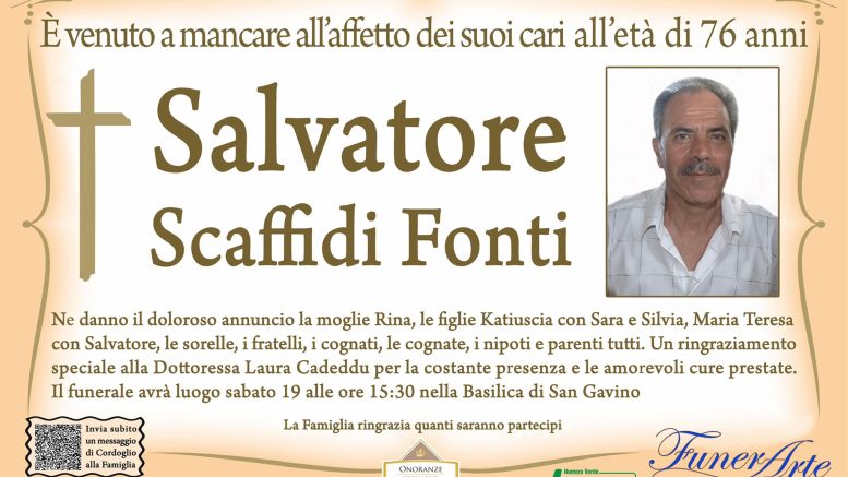 Il funerale avrà luogo sabato 19 febbraio alle ore 15:30 nella basilica di San Gavino a Porto Torres.